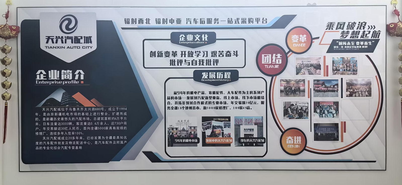 天興汽配城成立20多年來,已經(jīng)發(fā)展為全疆最具知名度的汽車配件批發(fā)及物流配送中心,是汽車配件及附屬產(chǎn)品的專業(yè)化綜合汽配專營基地。