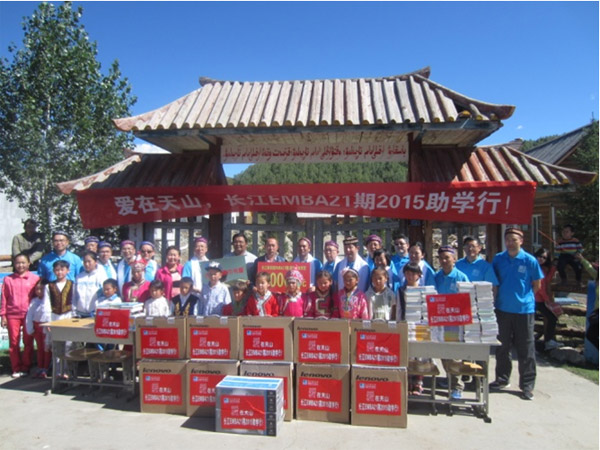 2015年8月協(xié)長(zhǎng)江商學(xué)院21期班向阿勒泰哈納斯鄉(xiāng)中學(xué)捐助5萬(wàn)元學(xué)習(xí)物資;