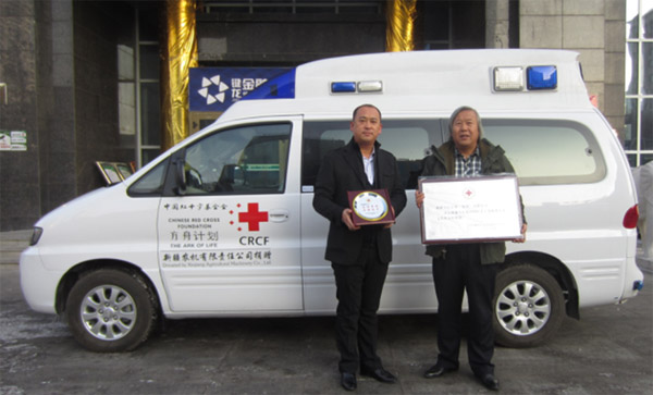 2014年11月向巴里坤紅十字會(huì)捐贈(zèng)價(jià)值30萬(wàn)的救護(hù)車一輛;