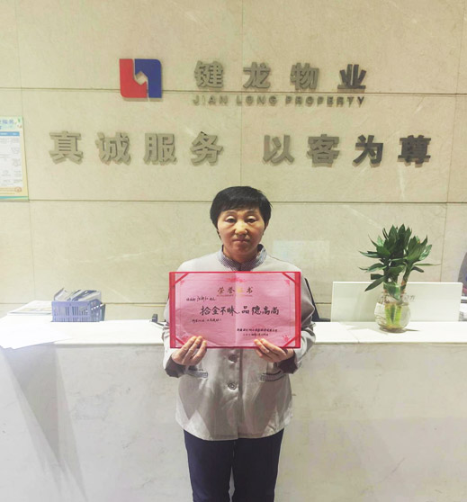 鍵龍物業(yè)浦發(fā)銀行項目保潔部員工張新紅,于2024年3月13日上午在浦發(fā)銀行10樓女浴室做衛(wèi)生清潔時,撿到一枚金戒指,根據(jù)戒指遺落的部位,張新紅推測這枚金戒指的“主人”應(yīng)該就是昨晚值班的銀行員工。一想到可能此時戒指的主人正在為自己丟失了這么貴重的物品而著急時,張新紅立即拿著戒指找到了銀行的當(dāng)班經(jīng)理,經(jīng)過當(dāng)班經(jīng)理和公司同事的共同幫助下,很快找到了戒指的主人,在張新紅完璧歸趙將丟失的金戒指交給“失主”時,失主非常感動,連連道謝,沒想到在當(dāng)今社會,真有在金錢面前不為所動的“活雷鋒”,當(dāng)時就要拿現(xiàn)金感謝張新紅,張新紅堅決不收,婉言拒絕,說到:“這本身就是自己應(yīng)該做的”!